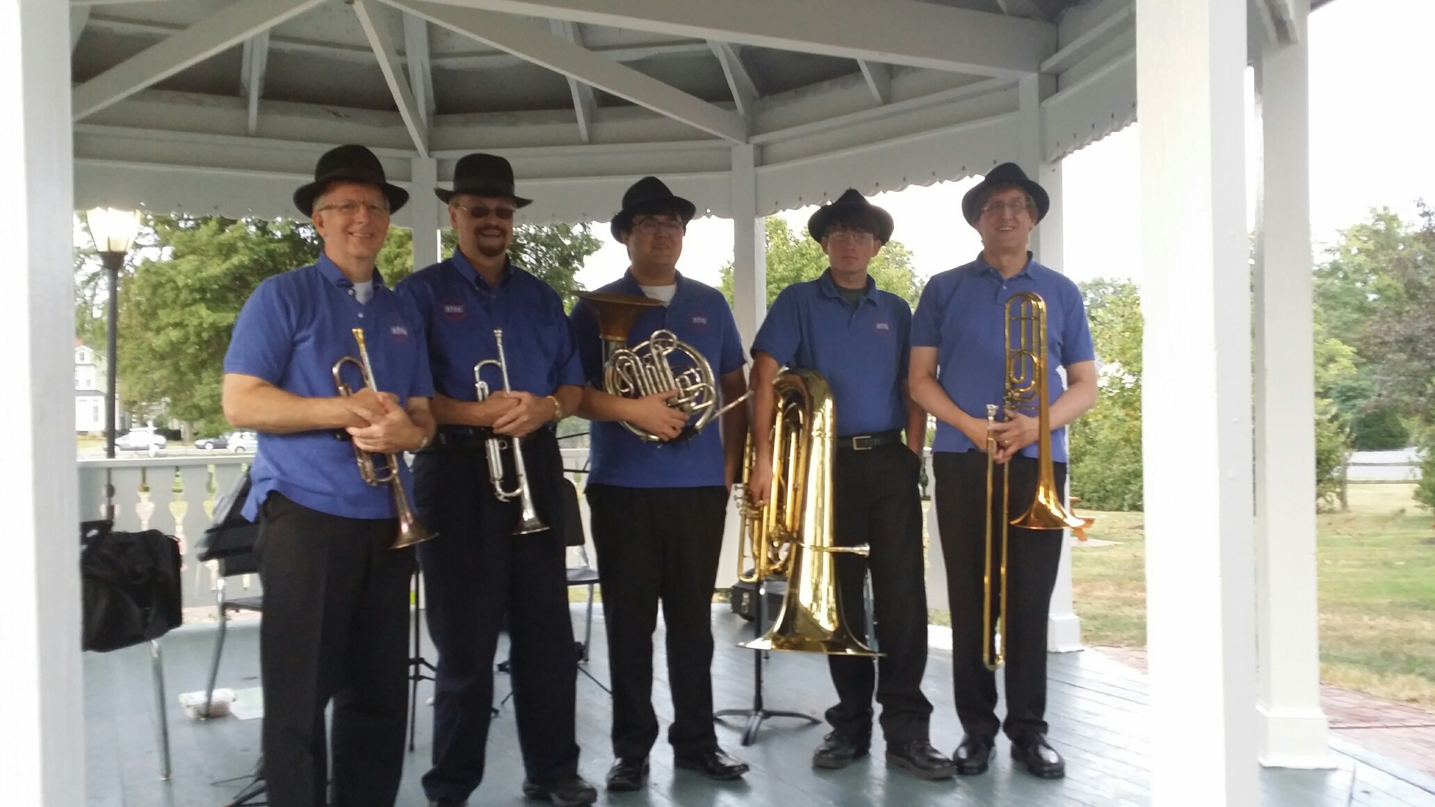 The Clarke County Community Band Brass Quintet performing at the Patsy Cline Theater.