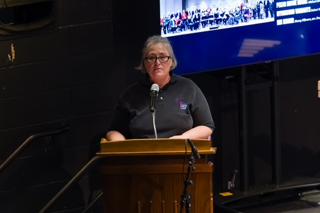 Julie Staggers plays clarinet, and she is an orthodontist in Winchester. She has been a member of the band for 30 years and is its the longest standing member. She has been the band's treasurer for the past 13 years and previously served as the band's secretary for 16 years.